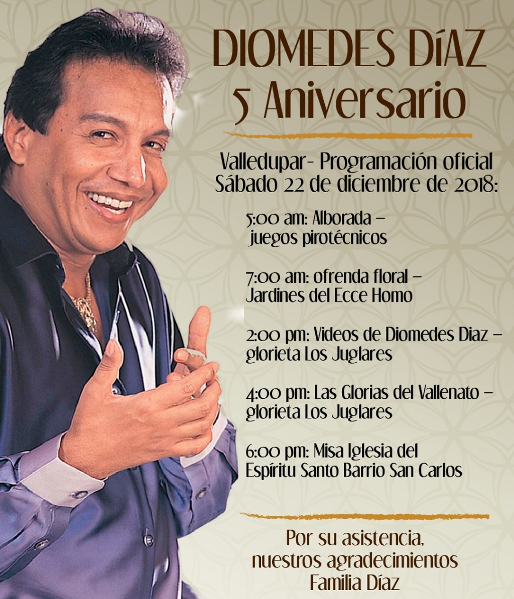 DestacadoLocal 21 de diciembre de 2018 Administrador 0 minutos de lectura Cinco años sin Diomedes Díaz Este 22 de diciembre se cumplen cinco años de la muerte de uno de los artistas más grande de la Compartir Leer más