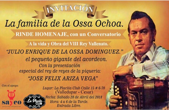 NotiSayco 23 de abril de 2018 Admin 1 minutos de lectura Este 28 de abril realizarán homenaje a Julio Enrique de la Ossa, 8° Rey del Festival Vallenato Leer más